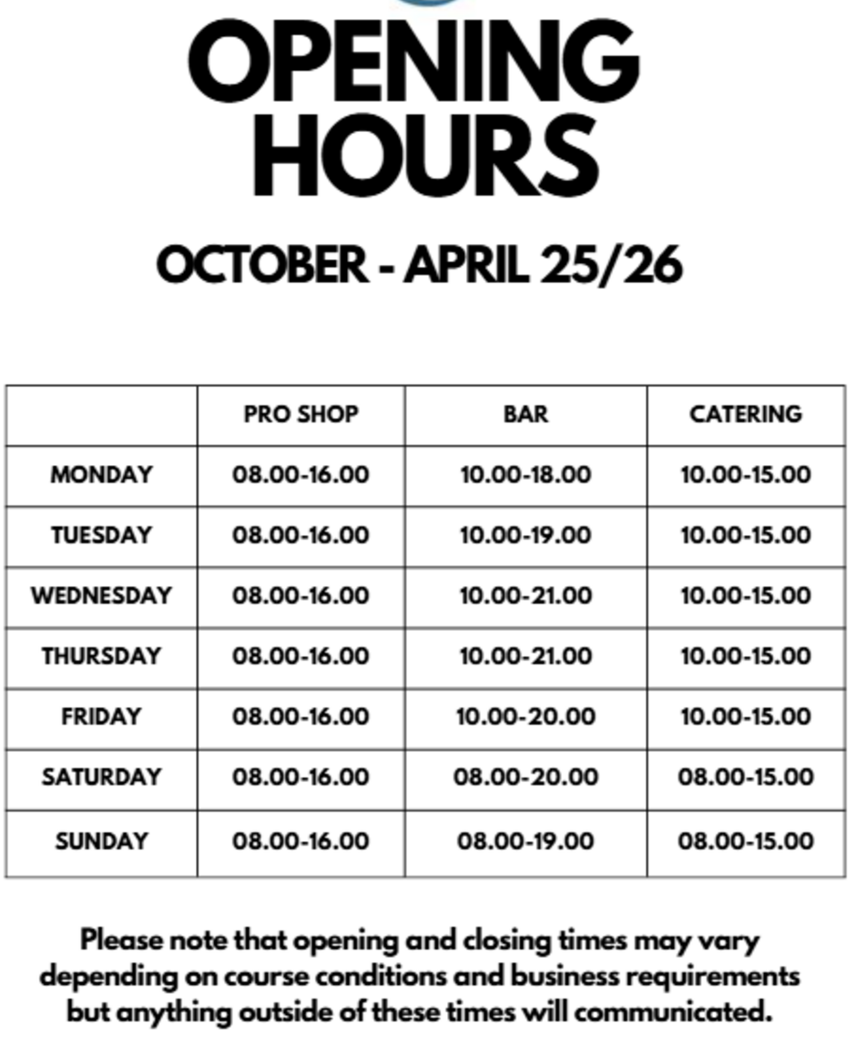 Thanks for making us feel so welcome... Course was in fab condition... The course was in excellent condition...... We had a great evening... The perfect setting... Amazing food and venue... Cracking New Year's eve... Excellent staff and top class food...